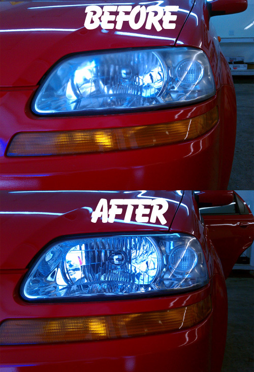 When this happens the lights turn milky / cloudy colored and night time driving becomes difficult.This cloud cover diffuses (spreads out) the focused light created by the internal reflectors. Because we age with our cars, this is something we don't always notice, but can eventually become a safety hazard for night time driving from reduced visability. With our professional tools from 3M, we are able to restore your headlights back to factory clear condition!